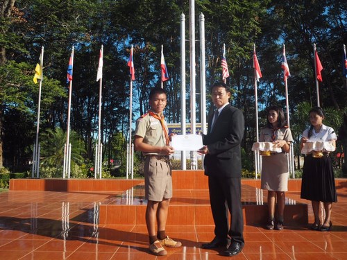 ผอ.ดาวหยาด ขันธ์เพชร มอบเกียรติบัตร ให้นักเรียนที่มีวินัยดีเด่นโรงเรียนเขื่อนช้างวิทยาคาร 21 ธ.ค.59