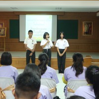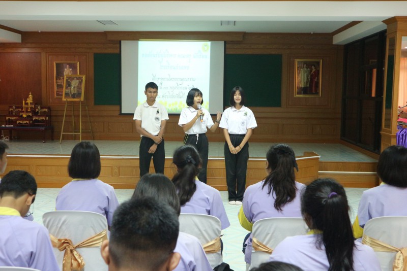นักเรียนตัวแทนโรงเรียนเล่าประสบการณ์การดำเนินโครงงานคุณธรรม |